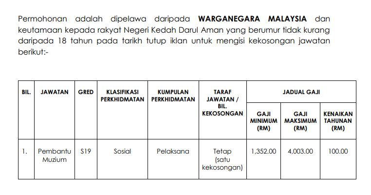 Jawatan Kosong Perbadanan Muzium Negeri Kelantan Tahun 2019 Panduan Kerjaya Kerajaan from panduantemuduga.net Pembantu pegawai latihan vokasional gred dv19; Pembantu pegawai latihan gred e19; Pembantu makmal filem gred c19; Pembantu pembangunan masyarakat gred s19; Pembantu kesihatan awam gred u19;